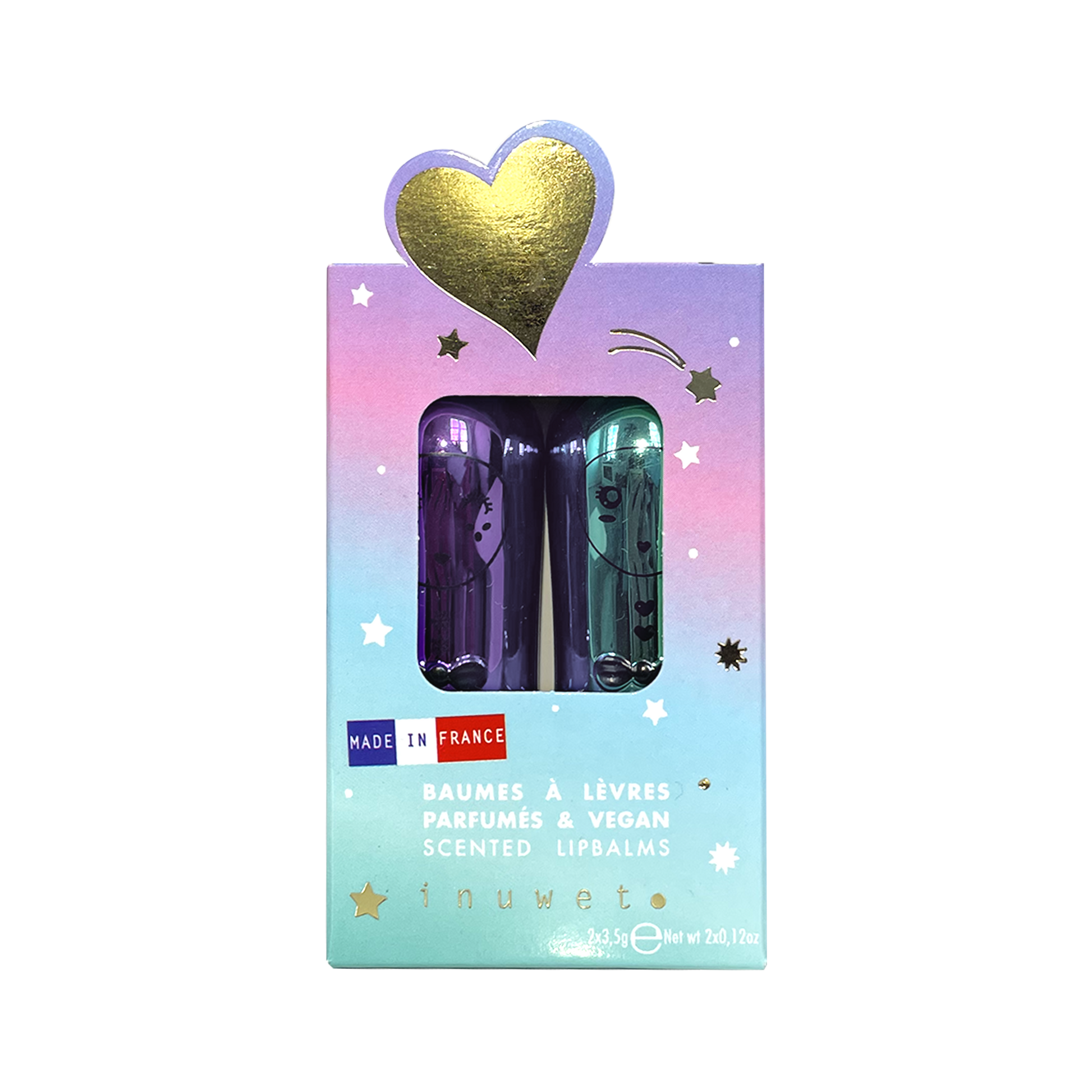 Un coffret Duo aux couleurs de l'arc-en-ciel parsemé d'or et issu de notre collection rainbow glitter. Composé de deux baumes à lèvres nourrissants et parfumés au cupcake et au cassis. Riches en beurre de karité, huile de macadamia, tournesol, ricin et Cire de Carnauba BIO. Ils nourrissent, réparent, adoucissent et protègent vos lèvres pour un confort absolu. Inspirés du rainbow et de l’esprit de Noël, ces baumes vous accompagneront tout au long des fêtes !