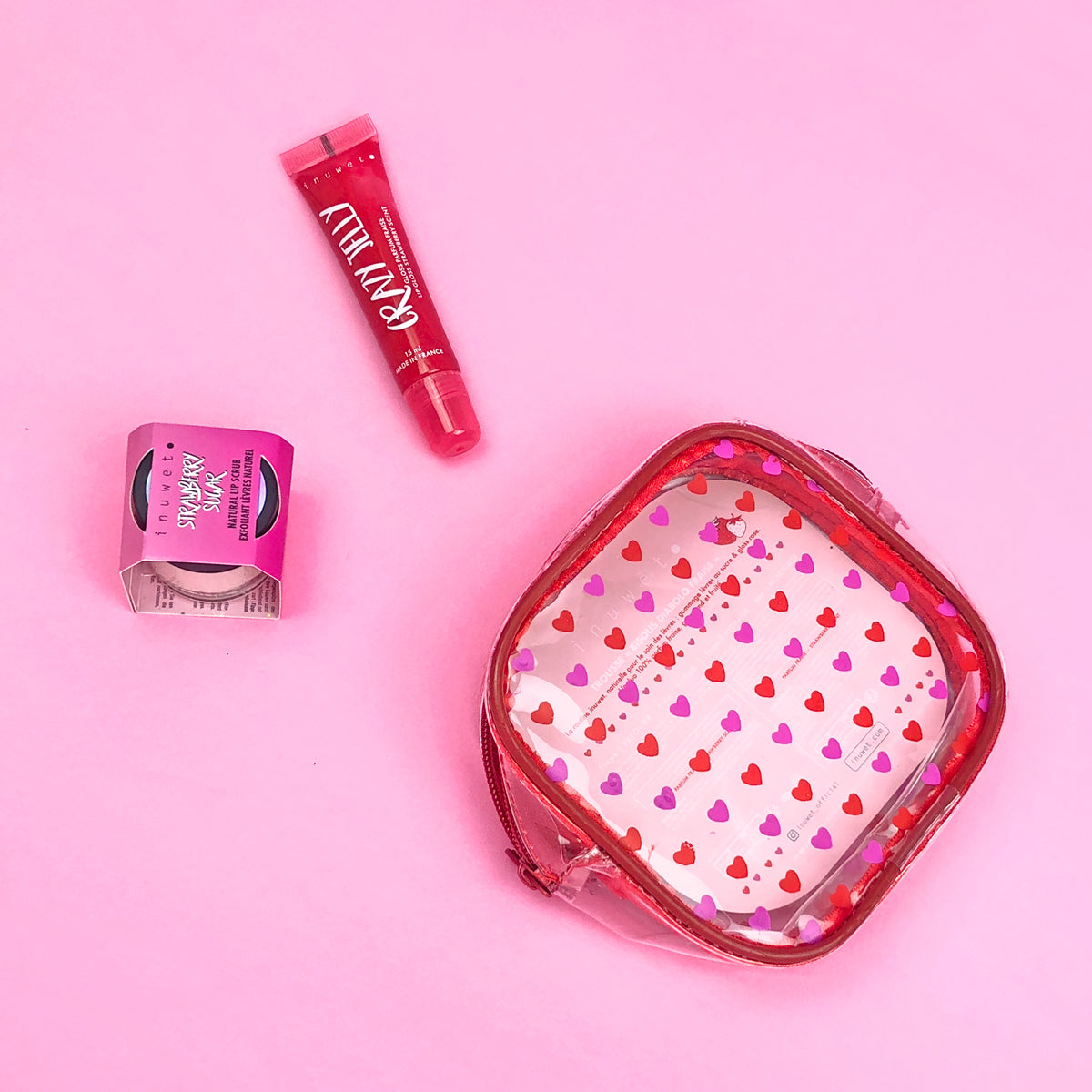 Cette trousse réunit deux essentiels pour des lèvres douces et éclatantes : un gommage à la fraise qui exfolie en douceur pour des lèvres lisses, et un gloss à la fraise qui hydrate tout en apportant brillance et confort.